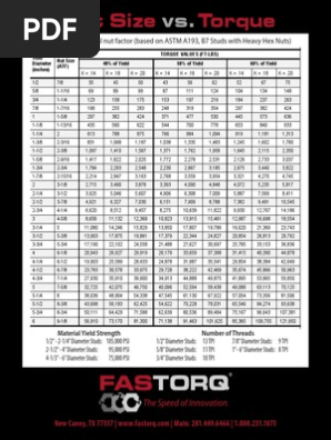 Bolt Size Vs Torque Chart Nut Hardware Screw