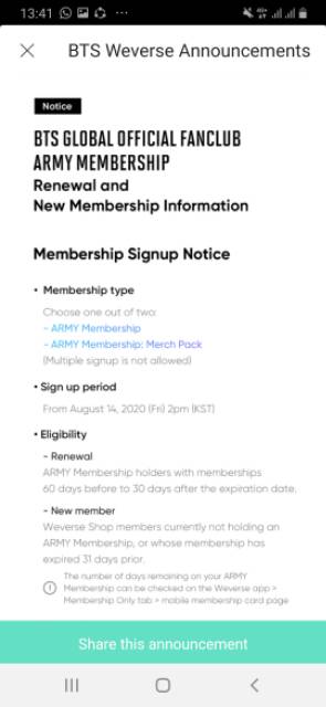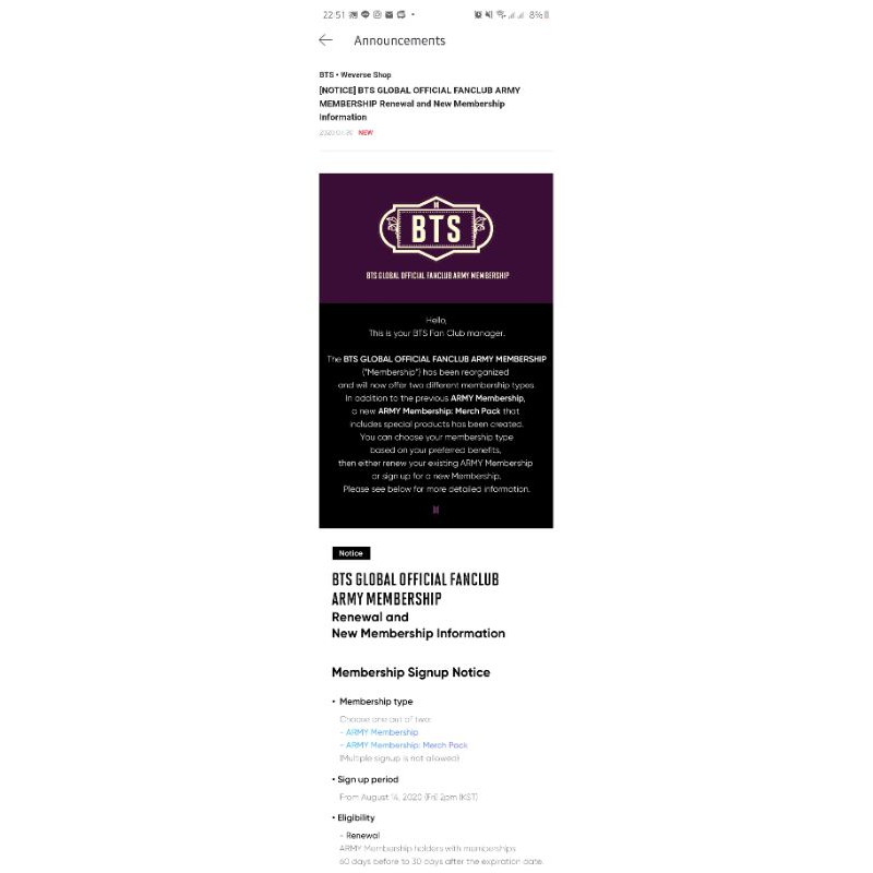 Bts Global Official Fanclub Army Membership Now Available In Weverse Shop Bts Amino