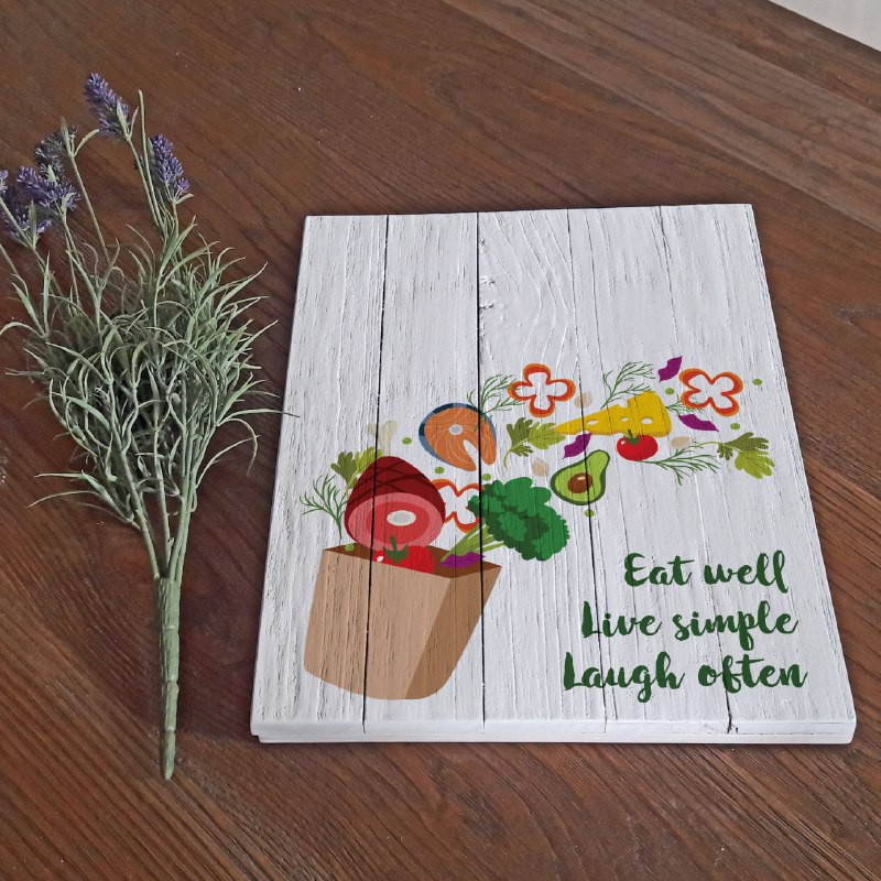 Wall Decor Poster Kayu Solid Rustic Eat Well Live Simple Laugh Often Shopee Indonesia