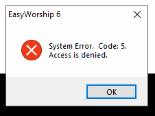 System Error Code 5 Access Is Denied Easyworship Legacy