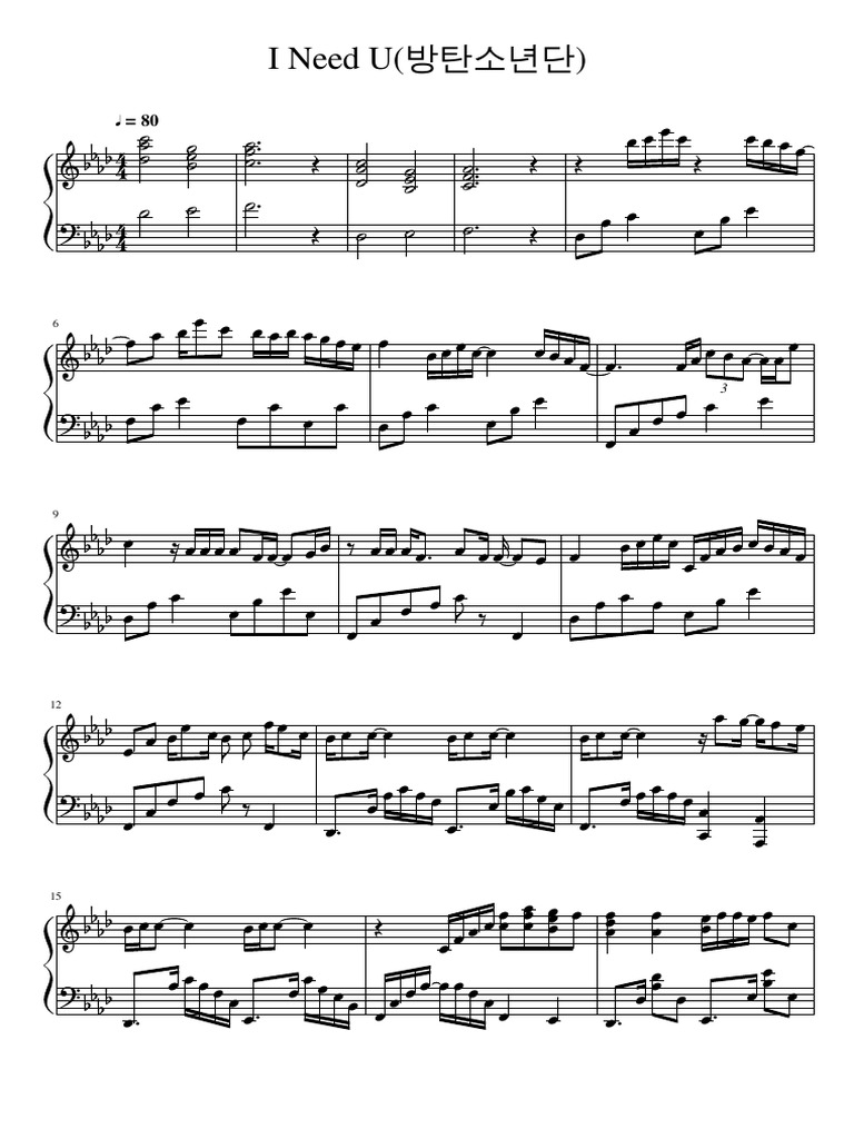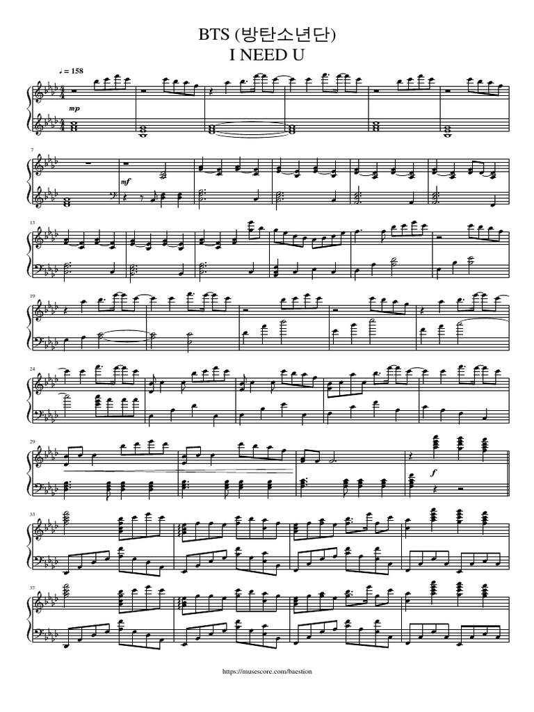I Need U Bts Piano Sheet Music